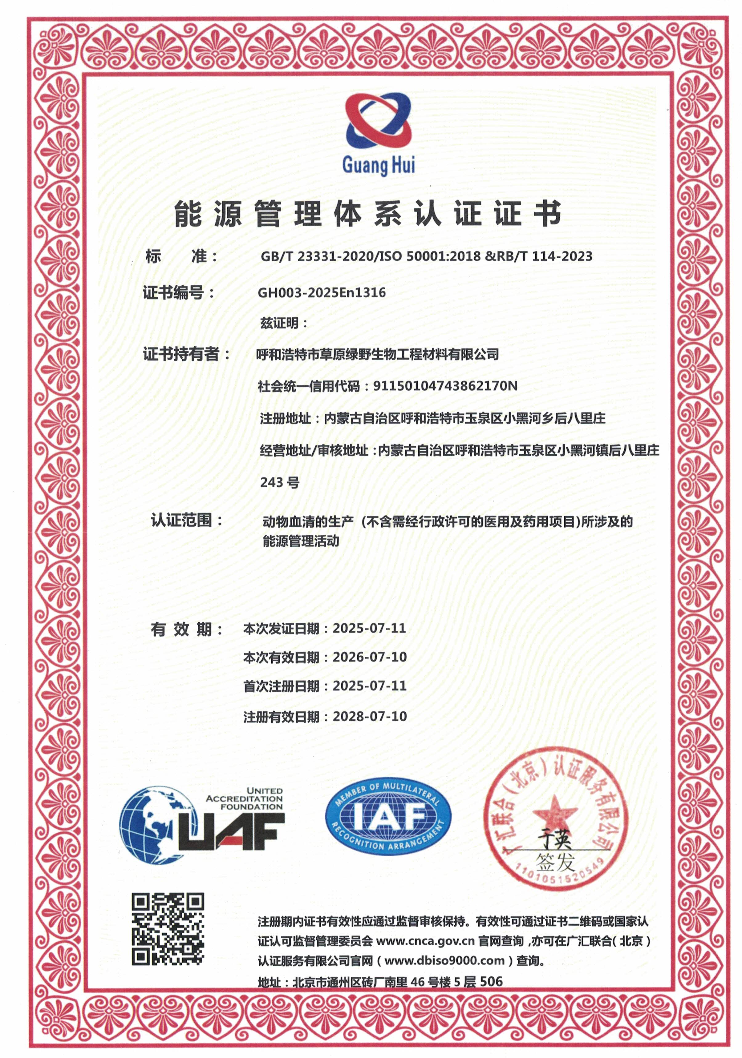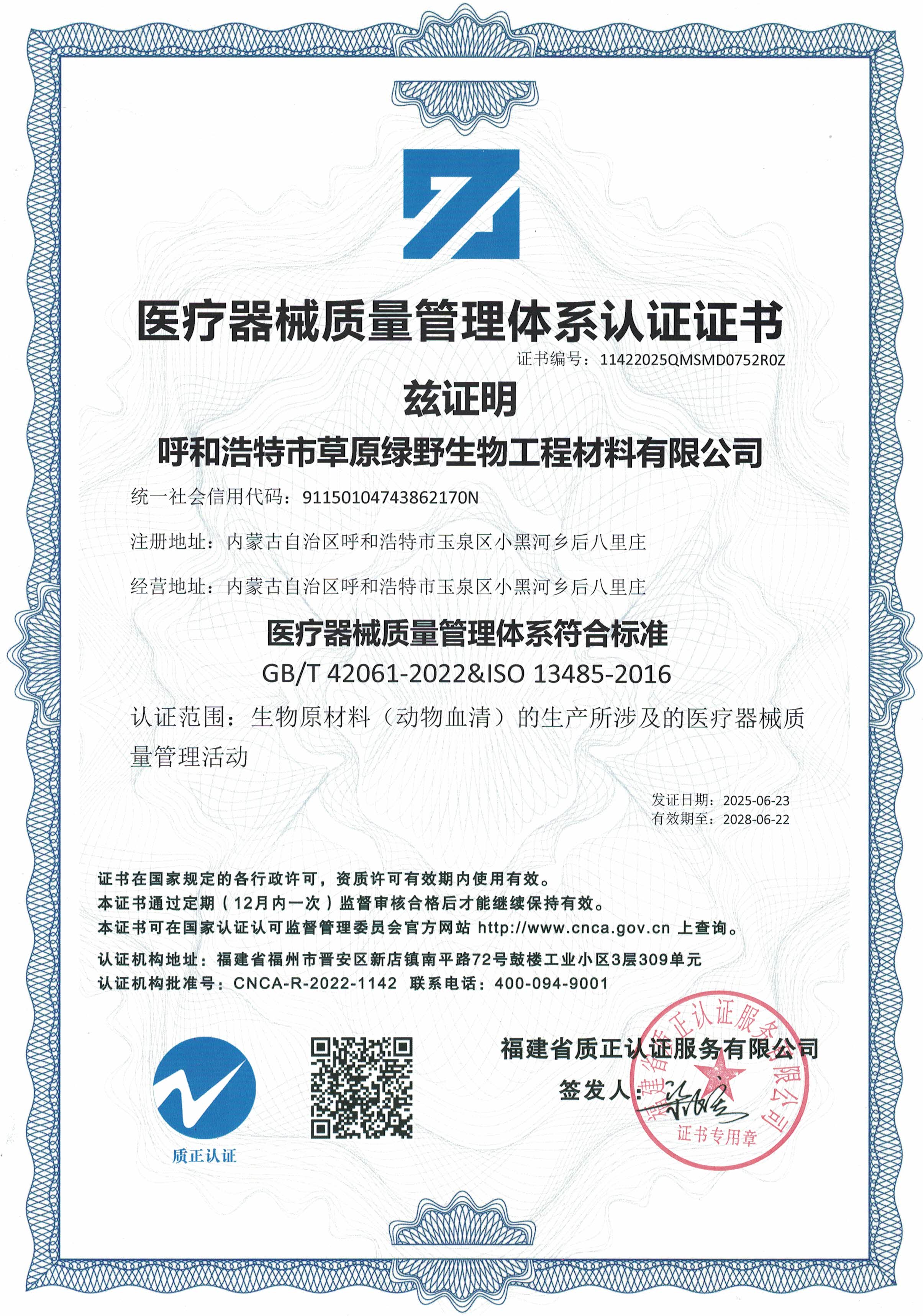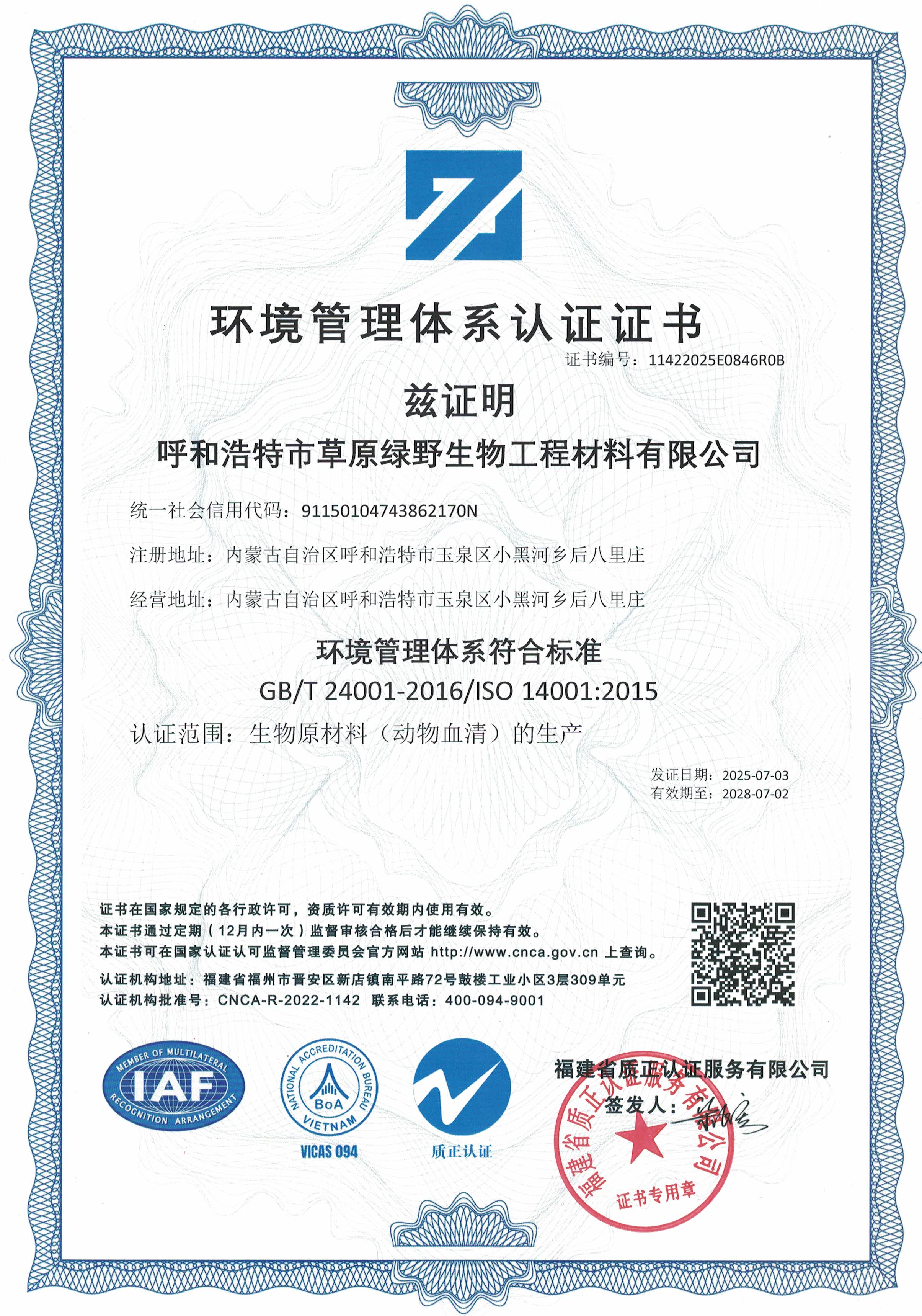 公司至今已多次通過中國醫(yī)藥生物技術(shù)協(xié)會《牛血清生產(chǎn)企業(yè)達(dá)標(biāo)》認(rèn)證、《牛血清生產(chǎn)質(zhì)量達(dá)標(biāo)企業(yè)》認(rèn)證。ISO9001質(zhì)量管理體系認(rèn)證、ISO45001職業(yè)健康安全管理體系認(rèn)證、ISO14001環(huán)境管理體系認(rèn)證、ISO13485醫(yī)療器械質(zhì)量管理體系認(rèn)證、ISO50001能源管理體系認(rèn)證、GB/T29490知識產(chǎn)權(quán)合規(guī)管理體系認(rèn)證、AAA級信用企業(yè)認(rèn)證、A級納稅單位評審等。
